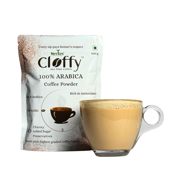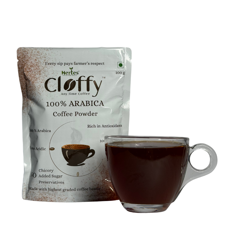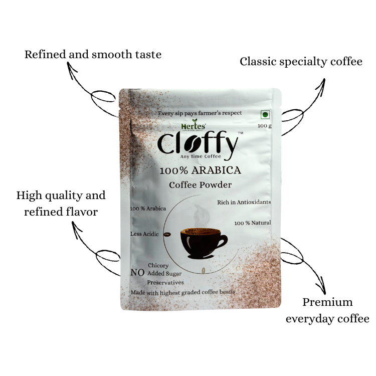 Savor the refined taste of Hertes Cloffy 100% Arabica Filter Coffee Powder. Made from AA+ Arabica beans, carefully roasted and ground, this coffee delivers a smooth, naturally sweet, and aromatic cup every time. Ideal for those who appreciate pure, high-quality coffee with balanced flavor and subtle notes.