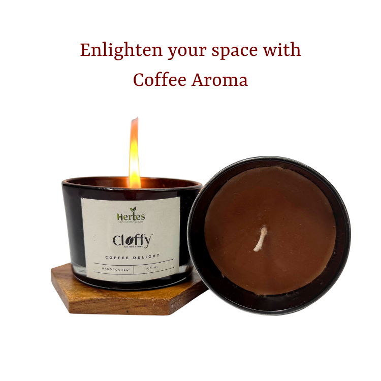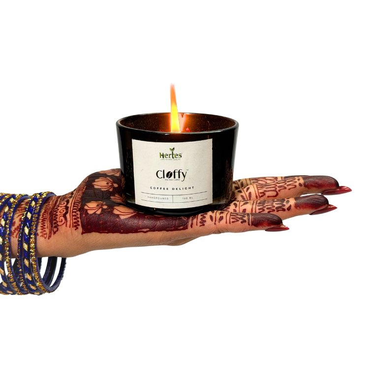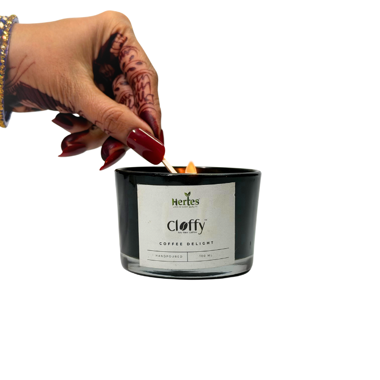 Sleek and modern, the Hertes Cloffy Black Cup Candle delivers a deep coffee fragrance that complements contemporary interiors. Perfect for minimalist desks, lounges, and refined spaces.