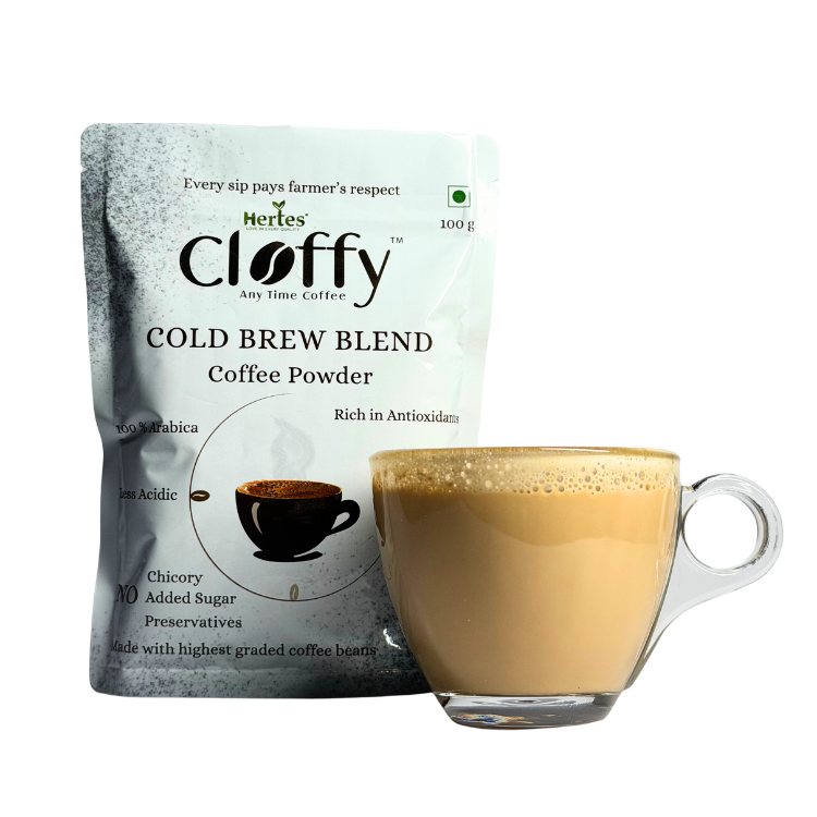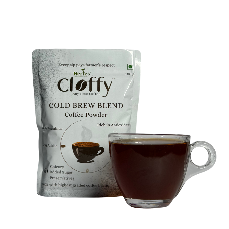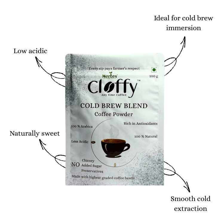 Enjoy the ultimate chilled coffee experience with Hertes Cloffy Cold Brew Blend Coffee Powder. Made from AA+, handpicked coffee beans, this blend is specially crafted for smooth, naturally sweet, and low-acid cold brews. Perfect for refreshing iced coffee anytime, at home or on the go.