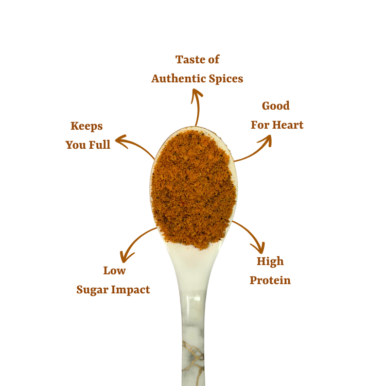 Hertes Fitlys Groundnut Chutney Powder is prepared from carefully selected groundnuts, slow-roasted and blended with traditional spices for rich, authentic flavour. A wholesome, protein-rich alternative to creamy sauces, it offers great taste with no refined sugar or preservatives.